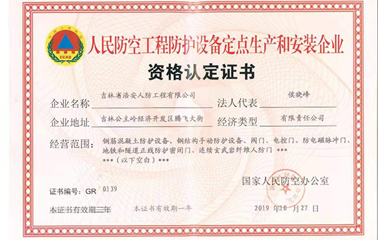 吉林省浩安人防工程有限公司是經(jīng)國家人民防空辦公室批準(zhǔn)成立的人防工程防護(hù)設(shè)備定點(diǎn)生產(chǎn)廠,2019年認(rèn)定為國家級(jí)高新技術(shù)企業(yè)。本廠擁有現(xiàn)代化的廠房及先進(jìn)的生產(chǎn)設(shè)備,集生產(chǎn)制造、質(zhì)量控制、銷售服務(wù)為一體的區(qū)域性行業(yè)廠。公司座落在吉林省公主嶺經(jīng)濟(jì)開發(fā)區(qū),占地面積達(dá)10000平方米,辦公樓1200平方米,廠房建筑面積達(dá)6000平方米以上,注冊(cè)資金1000萬元,企業(yè)的技術(shù)力量雄厚,其中防護(hù)工程師,高級(jí)工程師及中高級(jí)專業(yè)技術(shù)人員占30%。青海分公司2018年10月15日成立,于當(dāng)年11月26日通過 青海人民防空辦公室備案公示。 本廠經(jīng)營的主要產(chǎn)品:連續(xù)玄武巖纖維新型人防防護(hù)門、鋼結(jié)構(gòu)人防防護(hù)門、鋼筋混凝土人防防護(hù)門以及各種型號(hào)的通風(fēng)設(shè)備和防化設(shè)備。本廠生產(chǎn)設(shè)備齊全,擁有雄厚的生產(chǎn)能力和技術(shù)水平,并嚴(yán)格按照國家相關(guān)標(biāo)準(zhǔn)生產(chǎn)和安裝。2015年5月15日正式開業(yè)至今,承接吉林省人防工程項(xiàng)目上百項(xiàng),總施工面積超過百萬平方米。工程項(xiàng)目包含人防指揮所、醫(yī)院、地下商場、商場、學(xué)